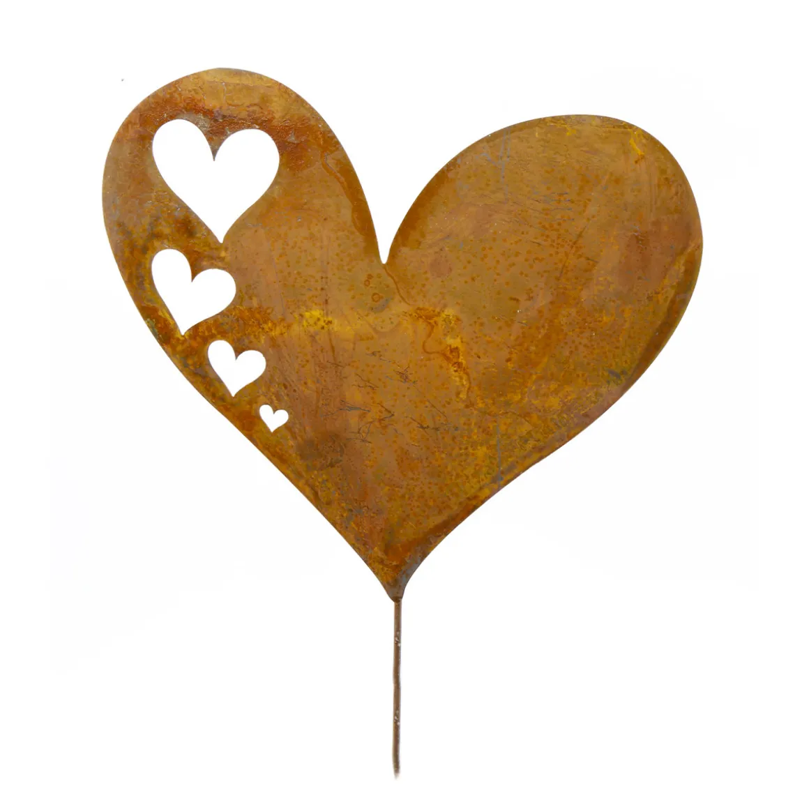Gartenstecker Herz, Herz im Herz aus Rost, 85cm