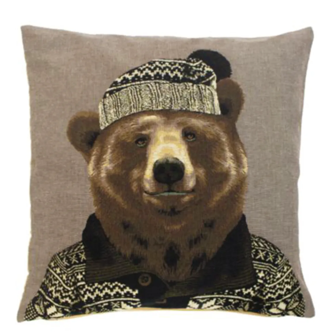 Gobelin Kissen Bär, Nordic Bär mit Mütze und Pullover, 45x45cm, Mars & More