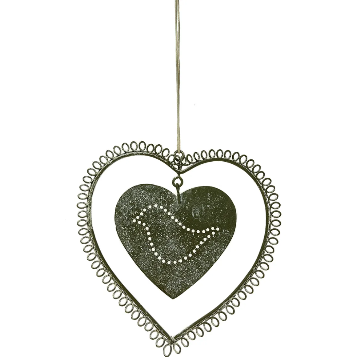 Metall Draht Herz „Herz im Herz“ 11cm, antikgrau, Hänger