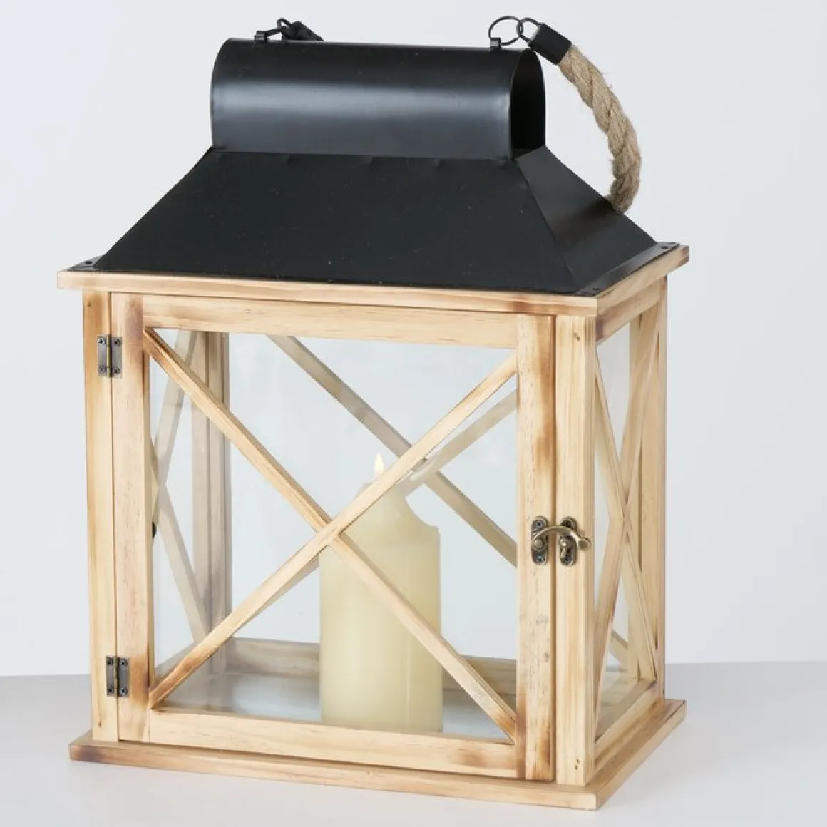 Holz Laterne Moritz mit Metalldach und Juteseil, 41x19cm, Boltze