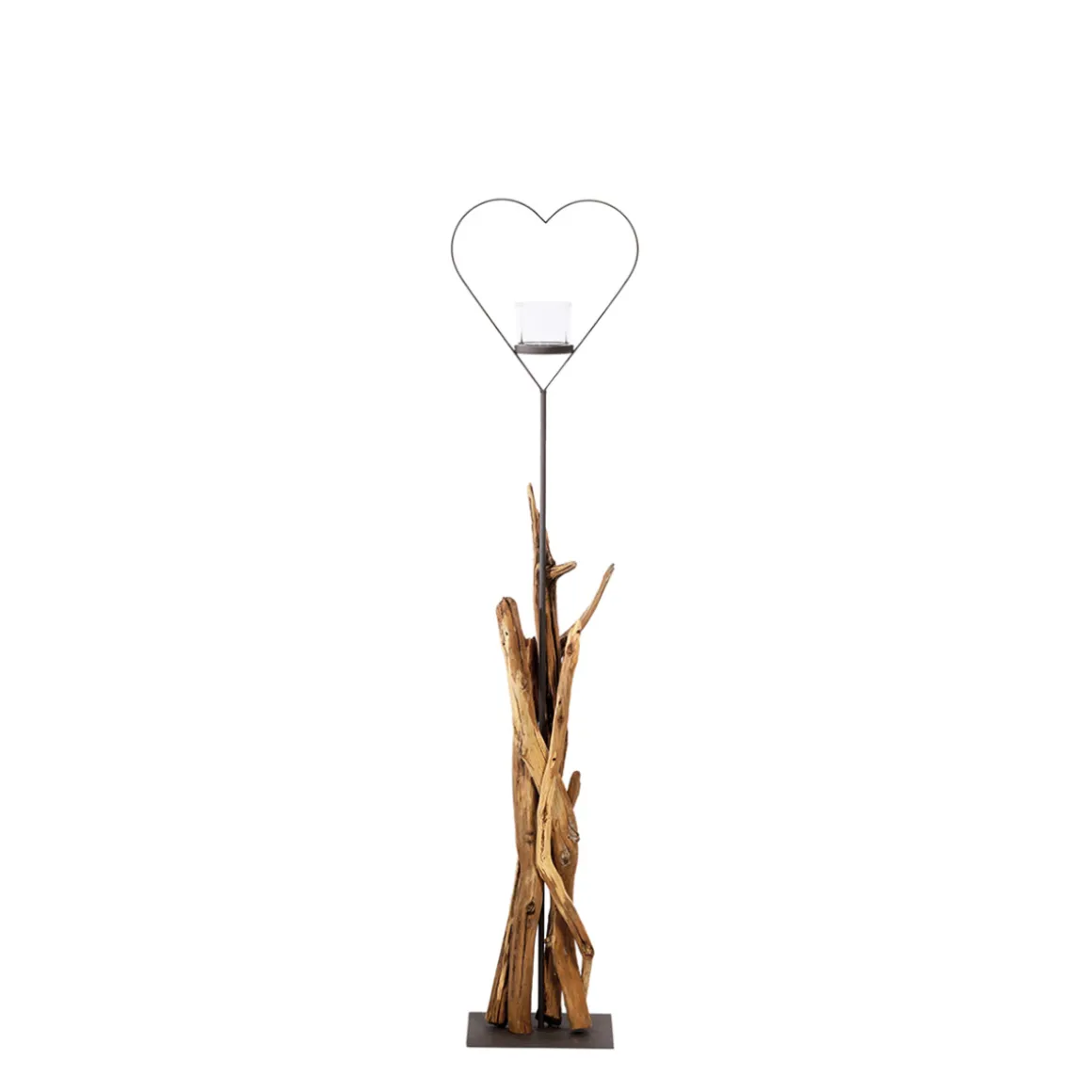 Holz Windlicht Herz, Naturholz Windlicht Raisa mit Herz, 115cm, WMG Grünberger