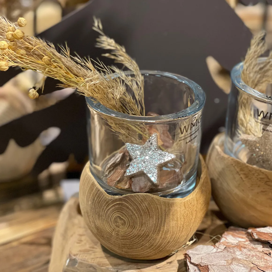 Holz Windlicht Teak, 22cm, WMG Grünberger