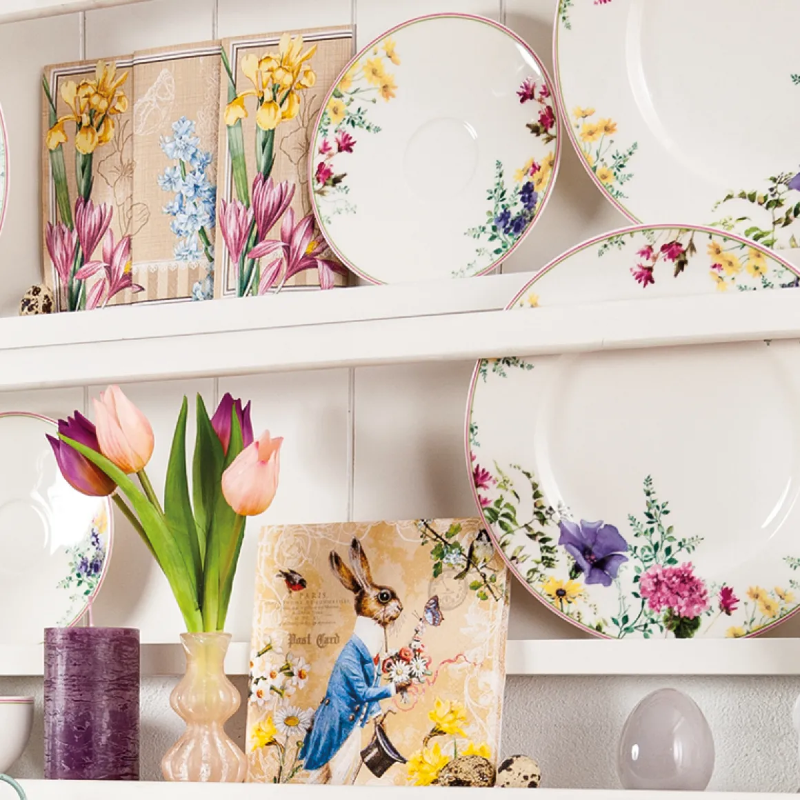 Home Fashion Papierservietten Frühlingsblumen auf Leinenoptik, 33x33cm