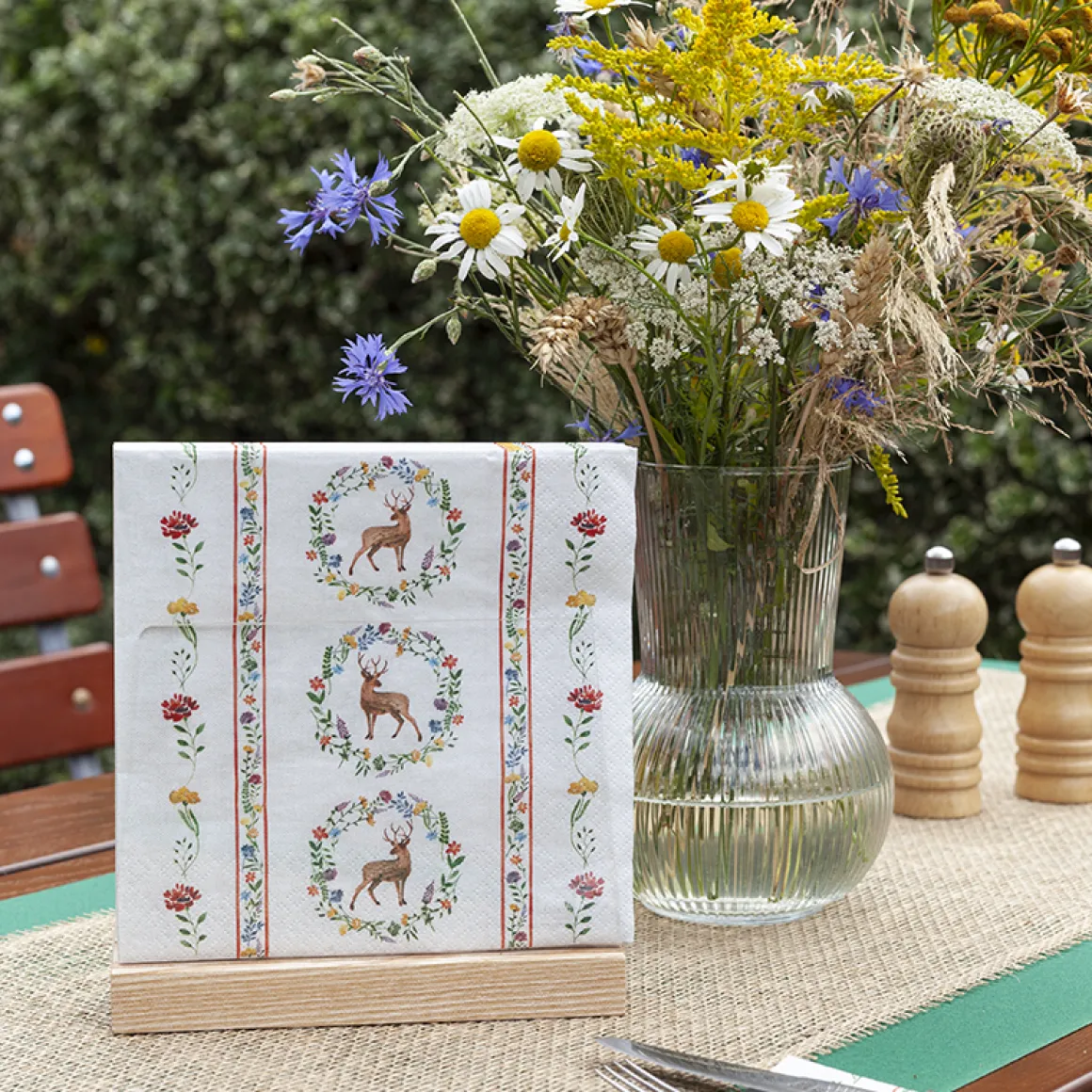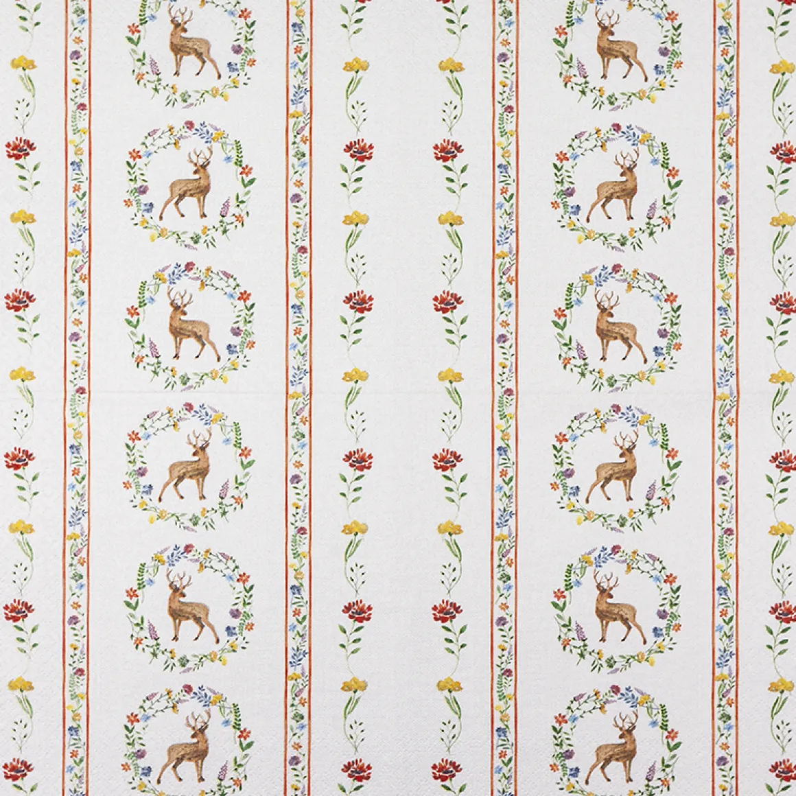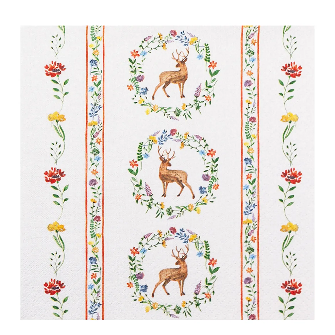 Home Fashion Papierservietten Hirsch, Hirsche mit Blumenbordüre, 33x33cm