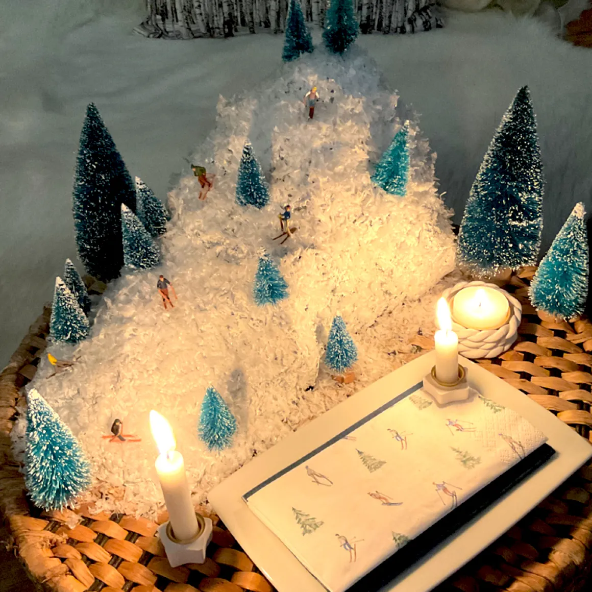 Home Fashion Papierservietten Skifahren, Skifahrer und Tannenbäume, 33x33cm