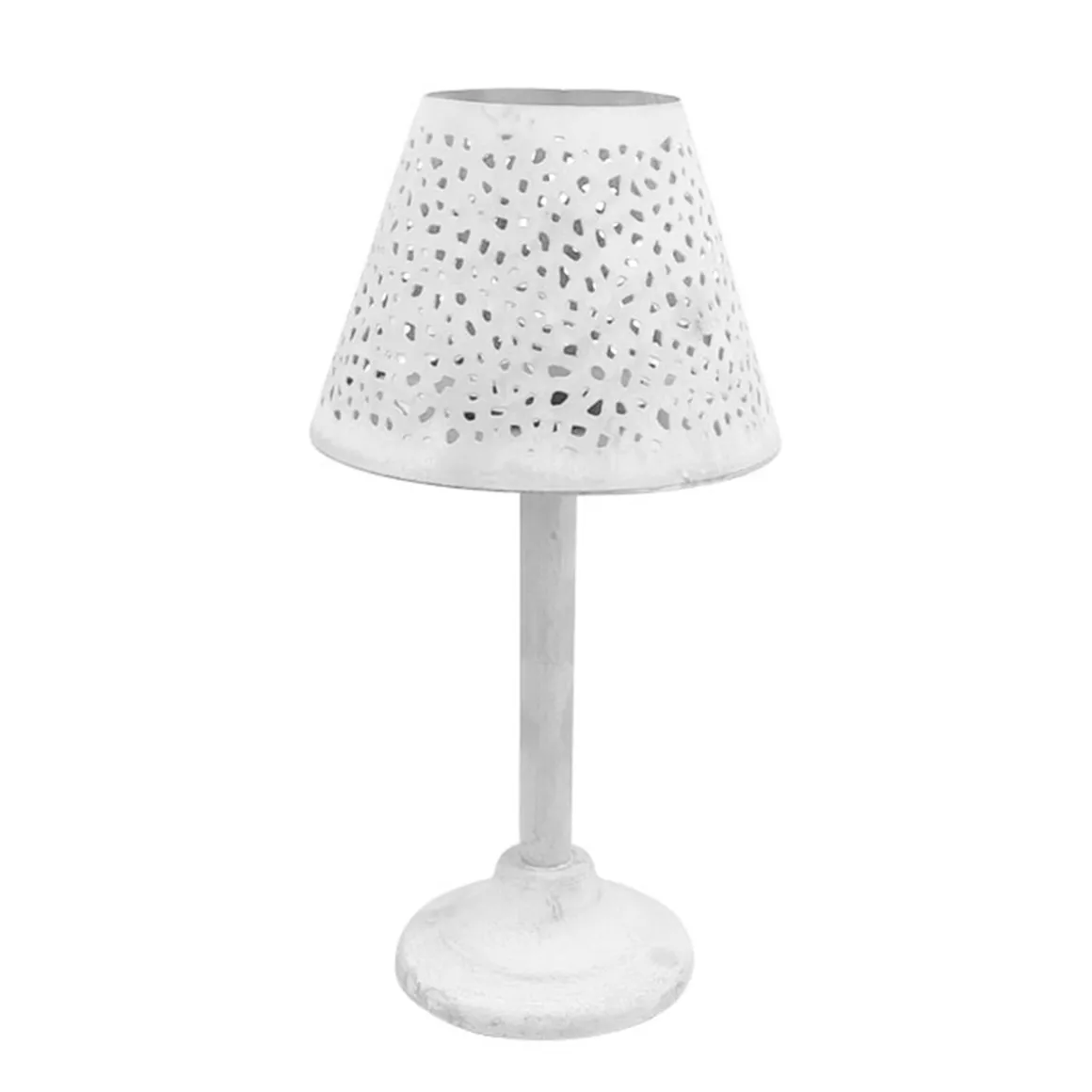 Kerzenhalter Clairblanc weiß used look, Teelichtständer in Lampenform, Kerzenständer Metall-durchbrochen
