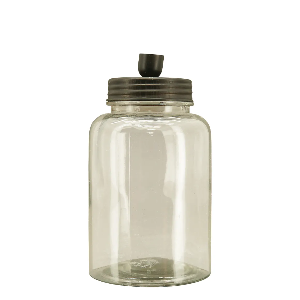 Kerzenhalter, Glasgefäß mit Metalldeckel, vintage-braun, für Stabkerzen, 22cm