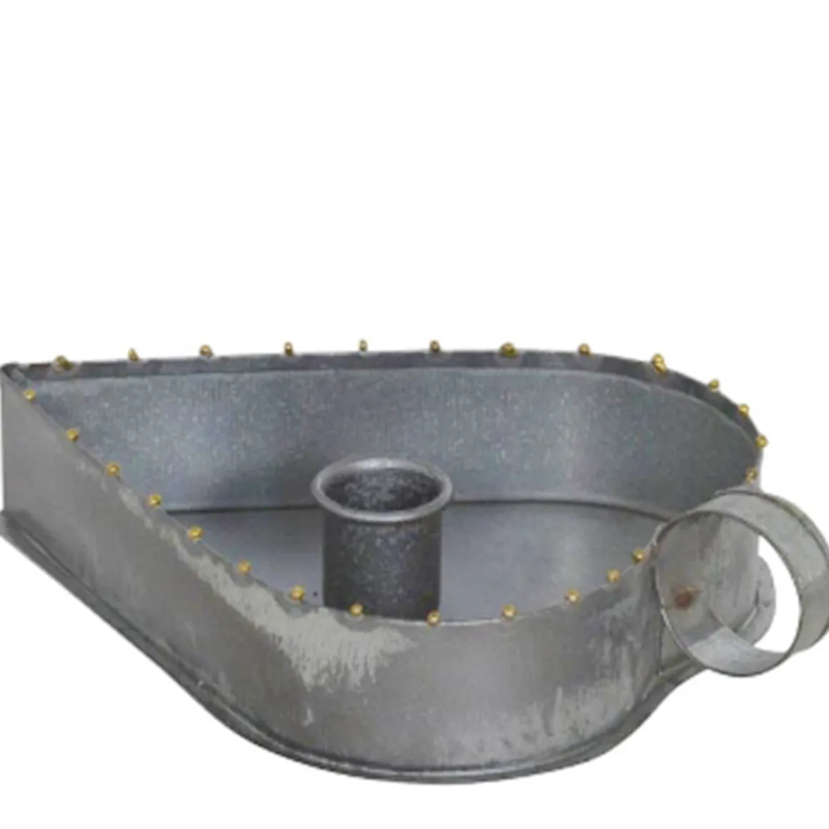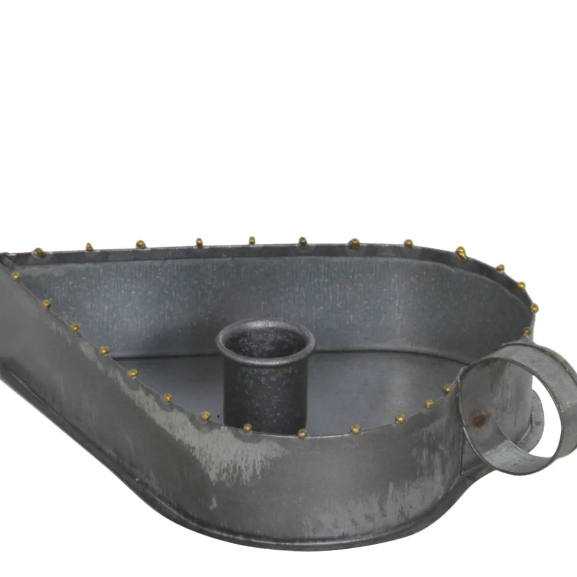 Kerzenhalter Herz used look, Zinkschale für Stabkerzen, Kammerleuchte mit Griff, 13x8cm