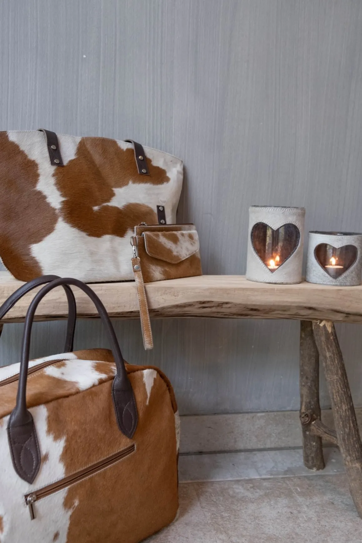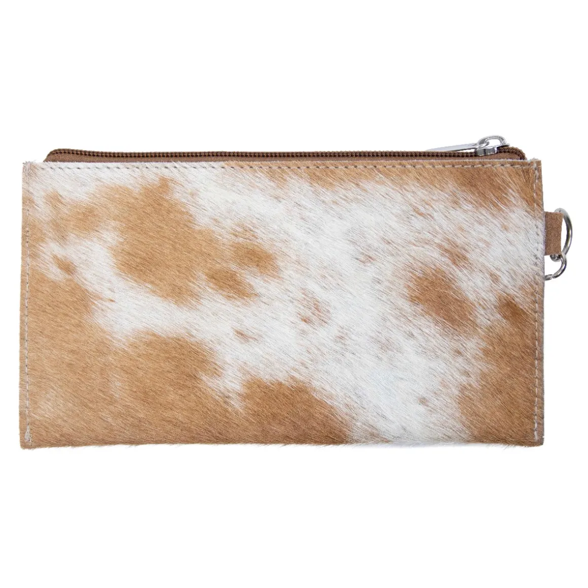 Kuhfell Mäppchen mit Außenfach, Geldbörse mit Handschlaufe braun-weiß, 20x11cm, Mars & More