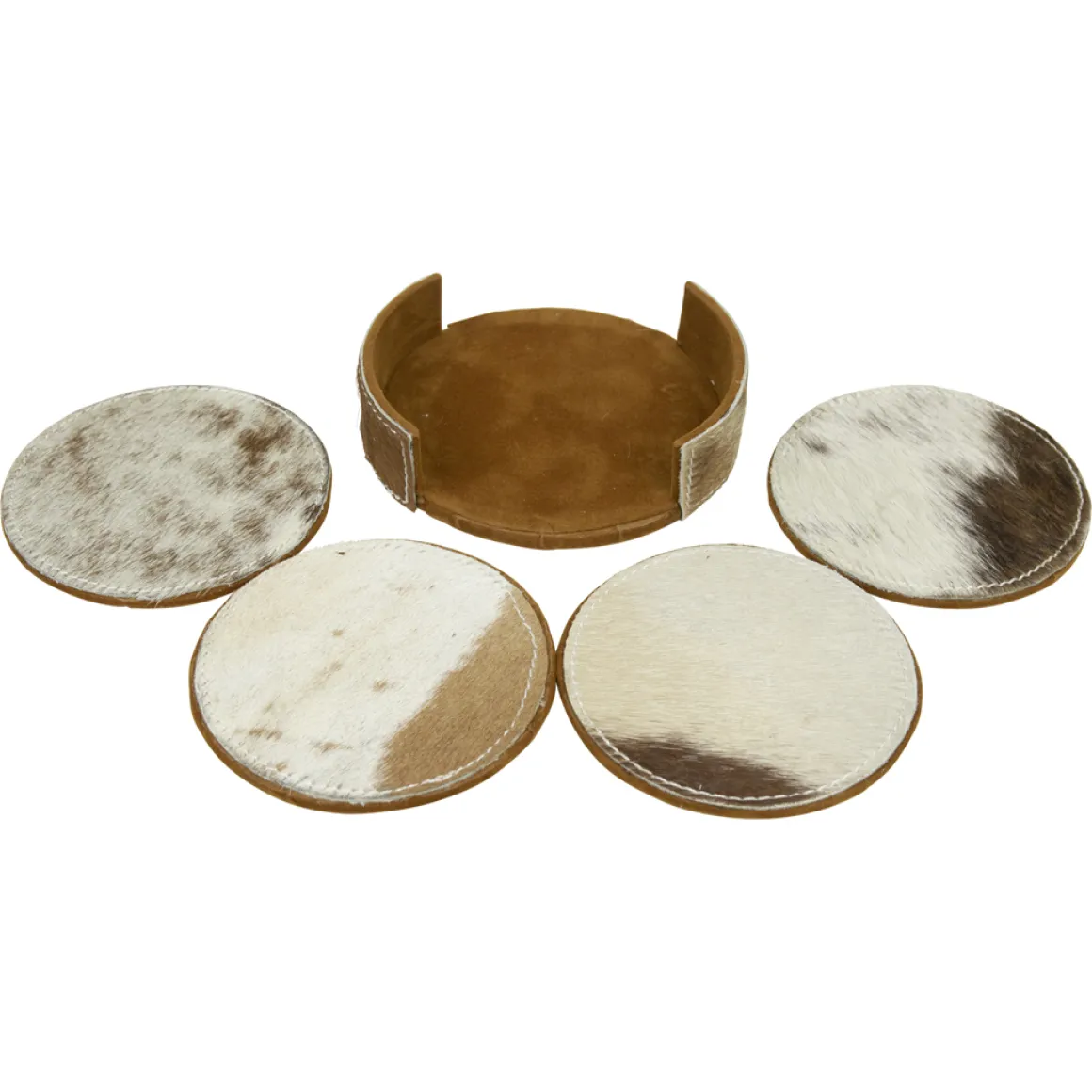 Kuhfell Untersetzer rund braun-weiß, Ø10cm, 4St/Pack, Mars & More