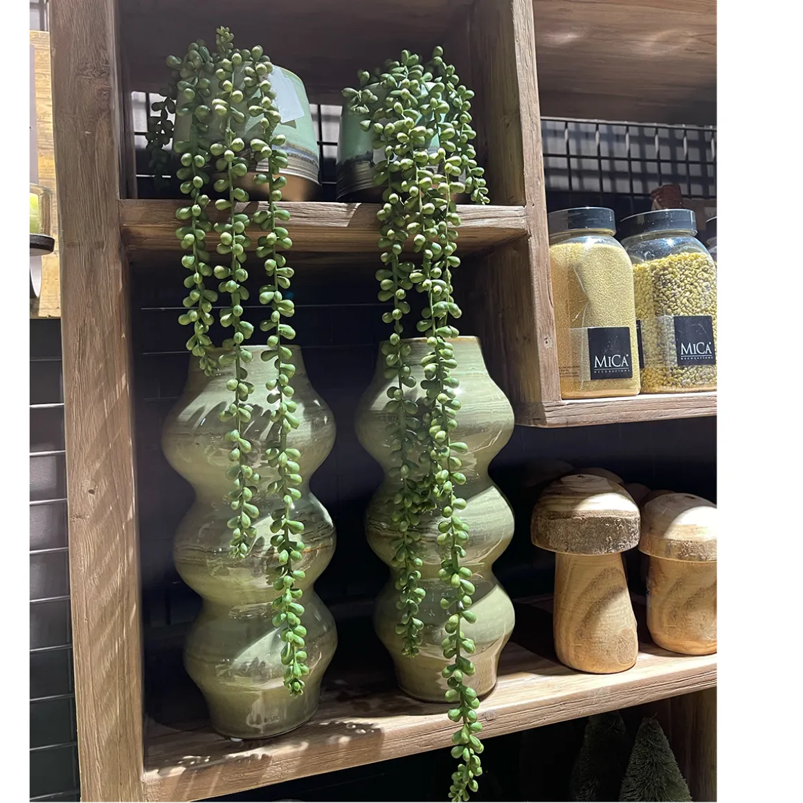 Kunstpflanze Perlenschnur, Erbsenpflanze grün, Senecio hängend, 71cm, Mica Decorations