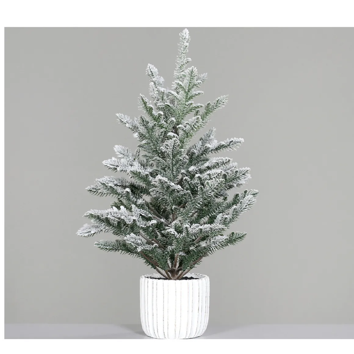 Kunstpflanze Tannenbaum beschneit, Tannenbaum im weißen Zementtopf, 42cm, DPI
