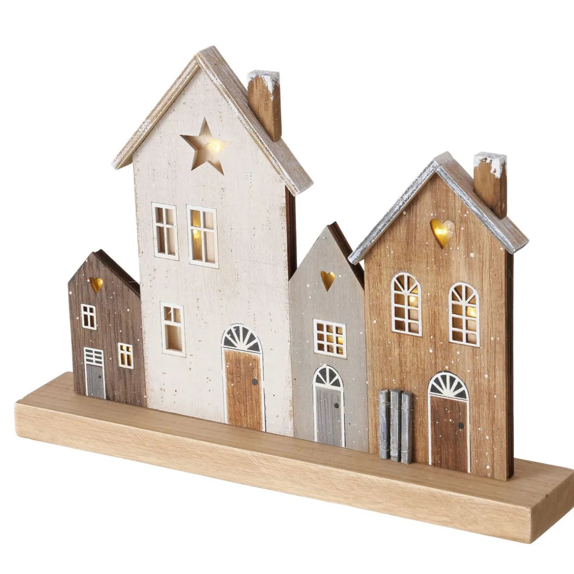 Produktinformationen „LED Aufsteller Haus Shabby chic, beleuchtete Häuserzeile Weihnachten, 32cm, Boltze Home Collections“