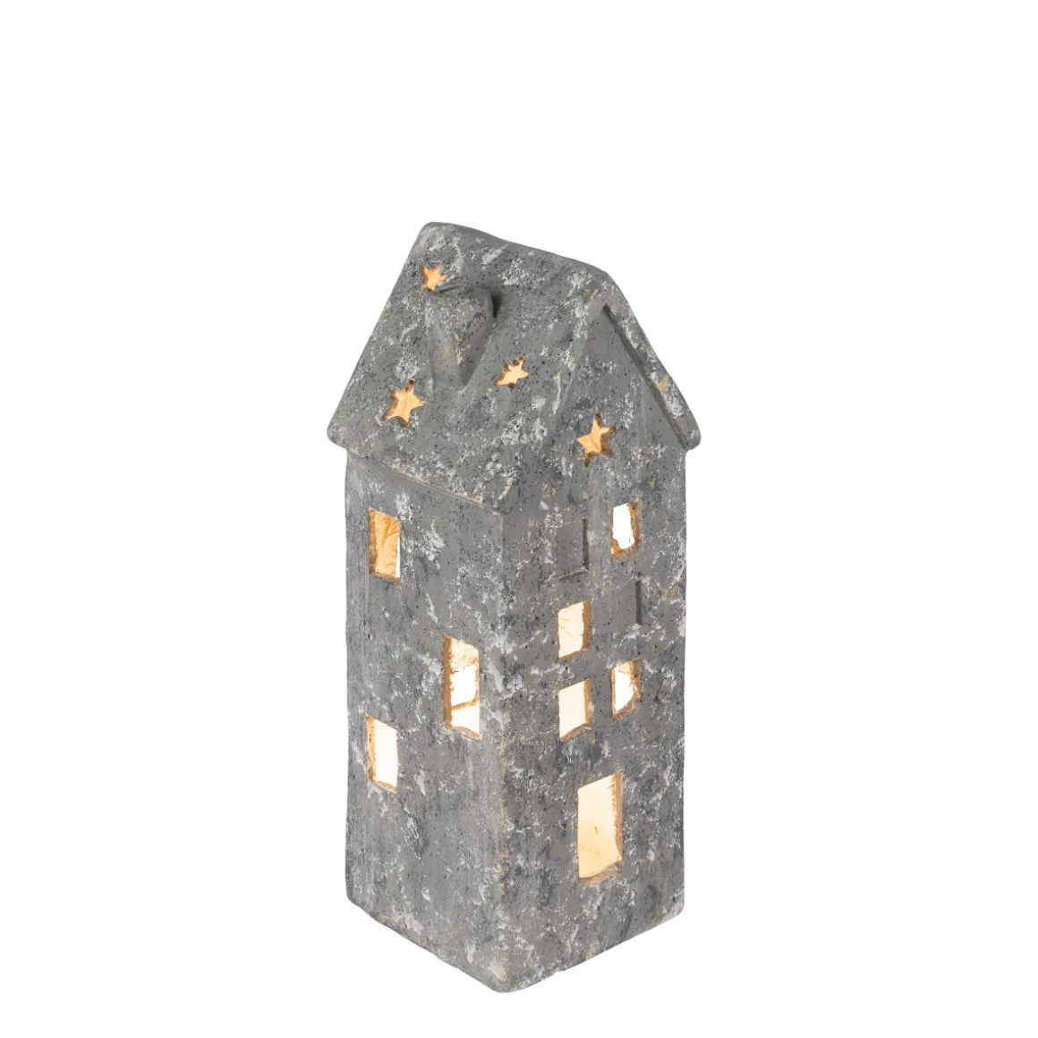 LED Haus Weihnachten, graues Haus mit Herz, 16x42cm, Magnesia