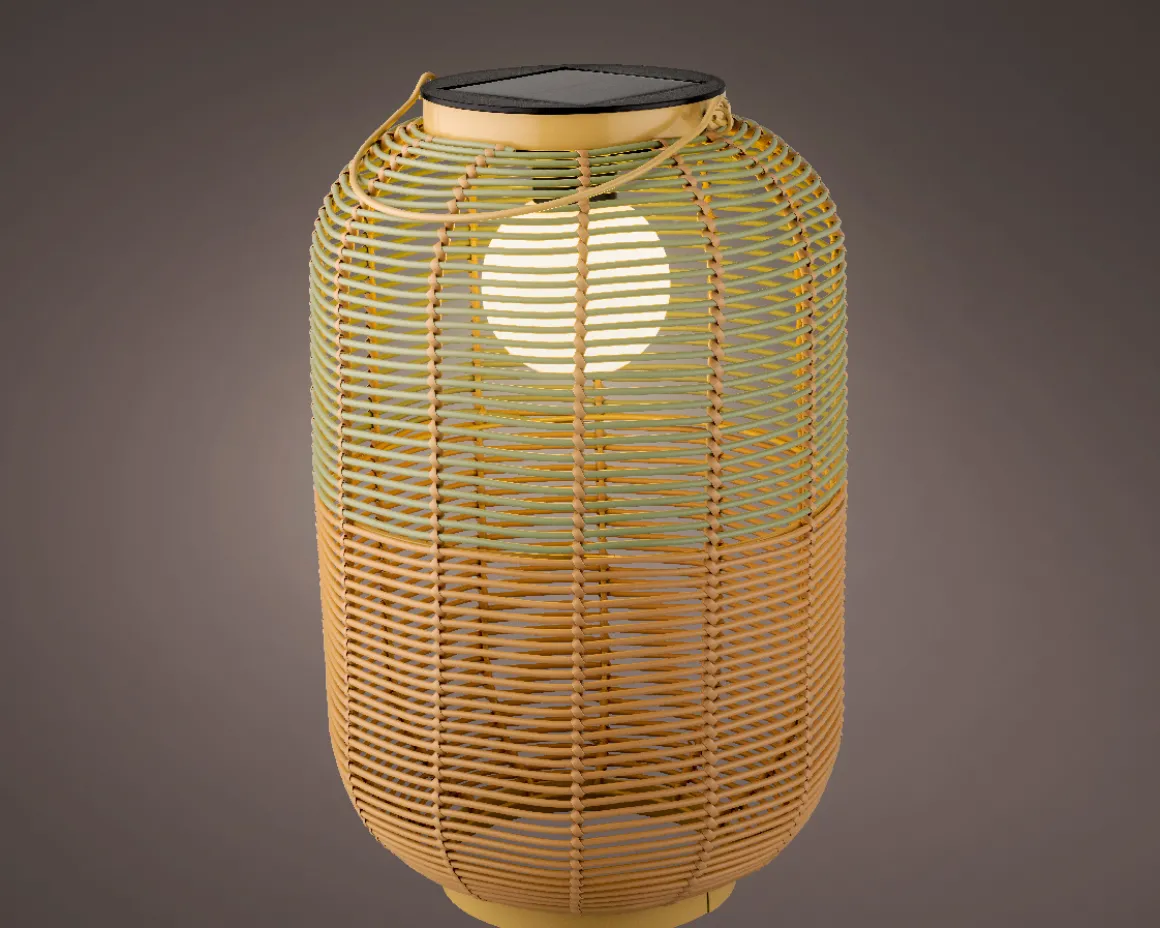LED Solar Laterne, künstliche Korbweide grün-braun, 43cm, Outdoor, Lumineo