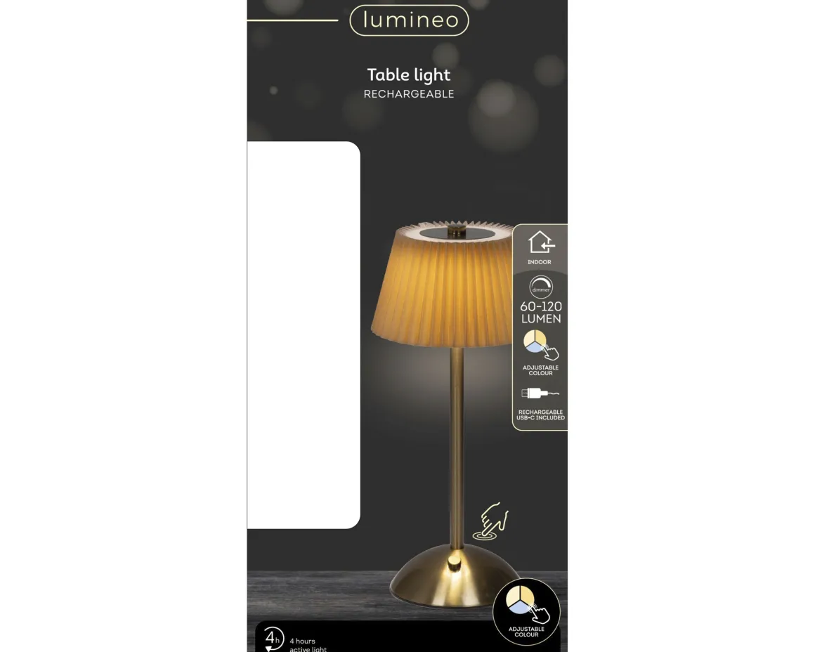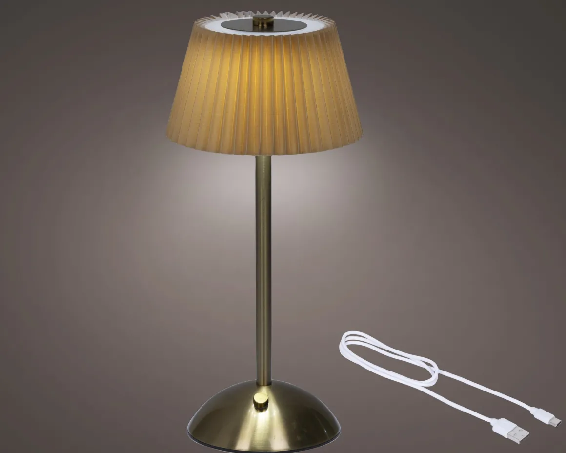 Produktinformationen „LED Tischlampe Faltenoptik, Creme-Gold, wiederaufladbar, dimmbar, 30 cm“