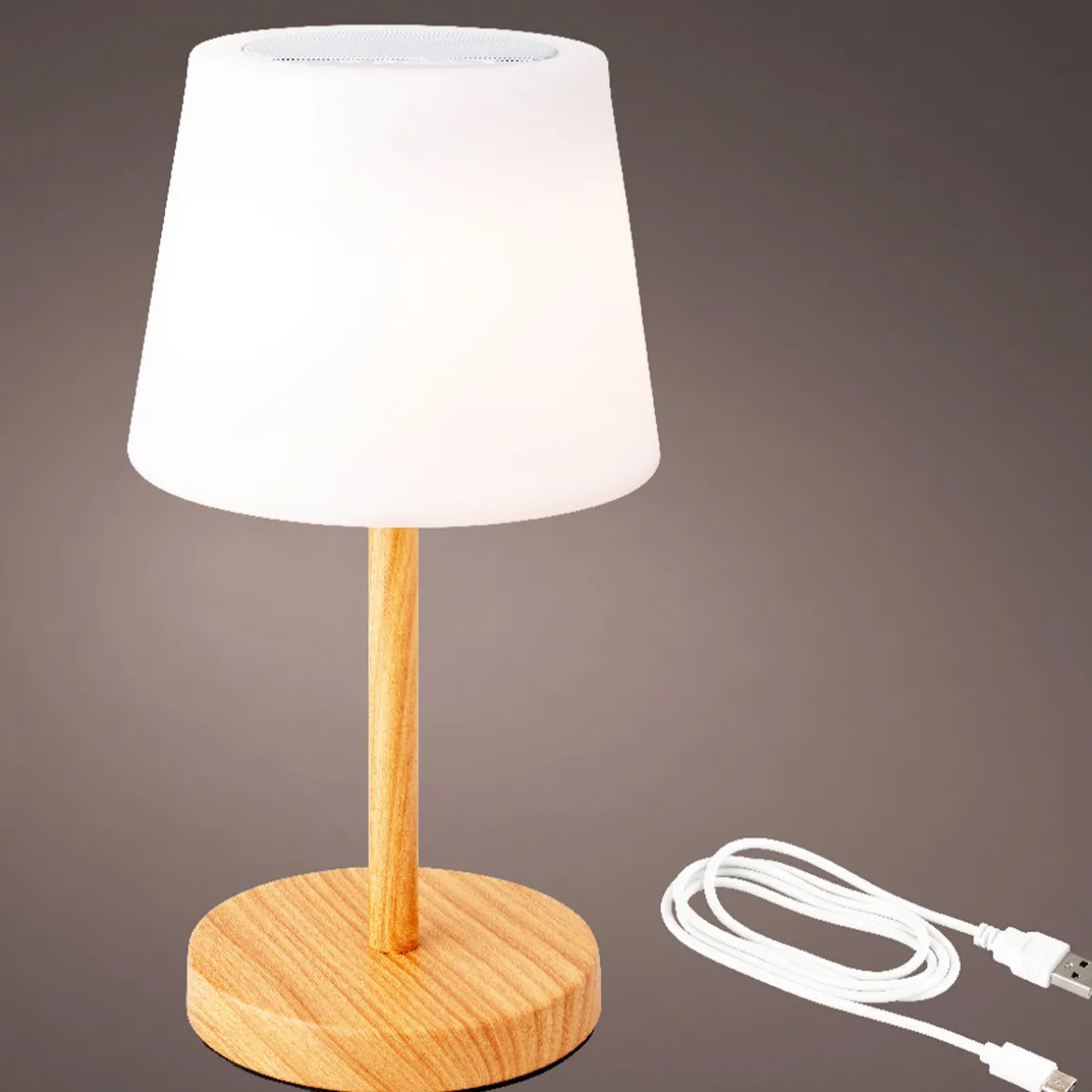 LED Tischleuchte mit Lautsprecher, aufladbar, warmes weiß, outdoorgeeignet, 38x20cm