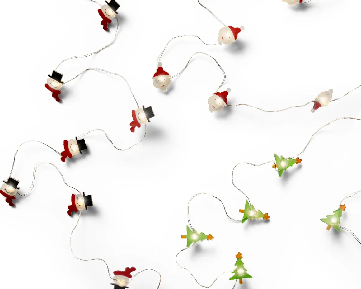 unterschiedliche Motive: Weihnachtsmann, Tannenbaum, Schneemann
