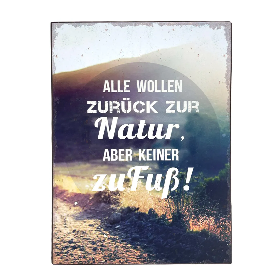 Metall Schild mit Spruch: Alle wollen zurück zur Natur…, 26x35cm, Gerrys Garden