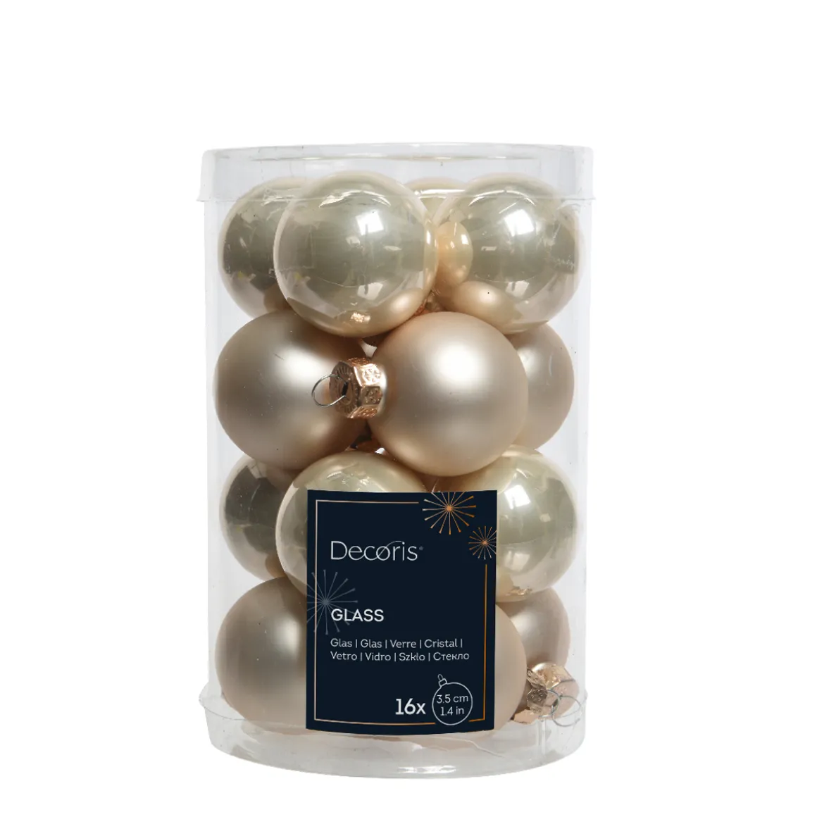 Mini Weihnachtsbaumkugeln aus Glas, perle emaille/matt, Ø3,5cm, 16St/Box, Decoris