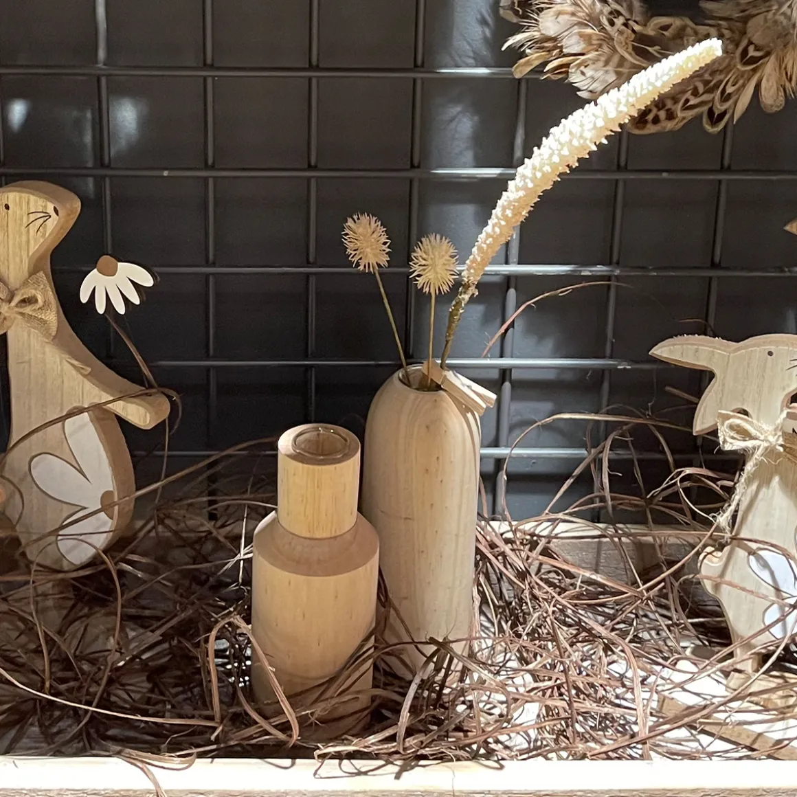 Naturholz Blumenvase Naturholz, kleine schlanke Holzvase mit Reagenzglas, 15cm