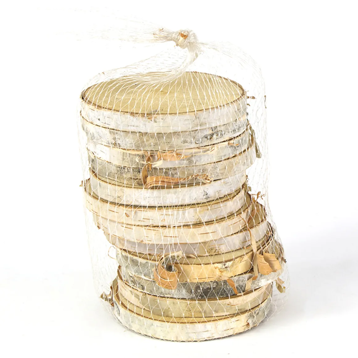 12 Stück Birkenscheiben im Netz