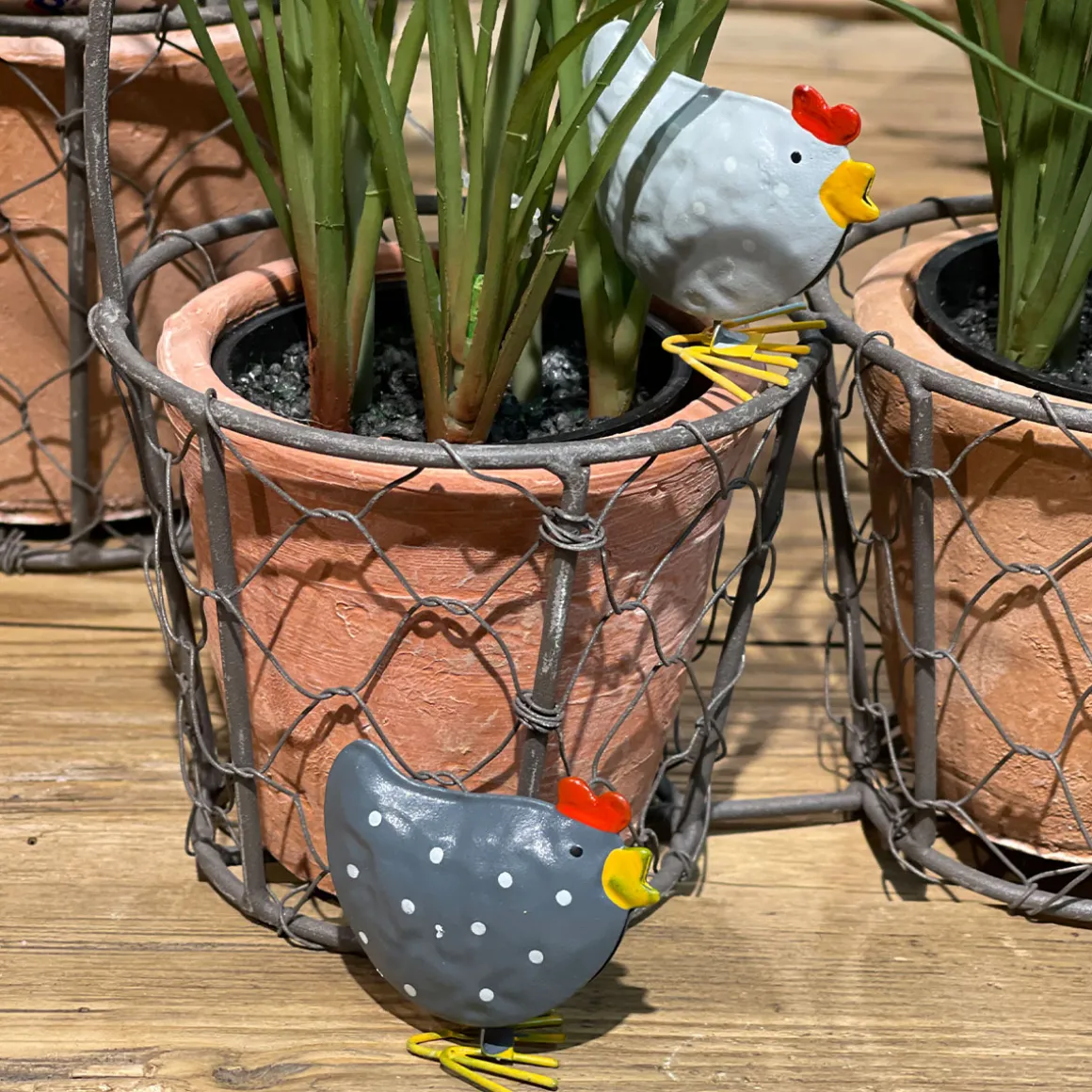Produktinformationen „Pflanztopf doppelt, Drahtkorb mit 2 Keramiktöpfe, 23x20cm“