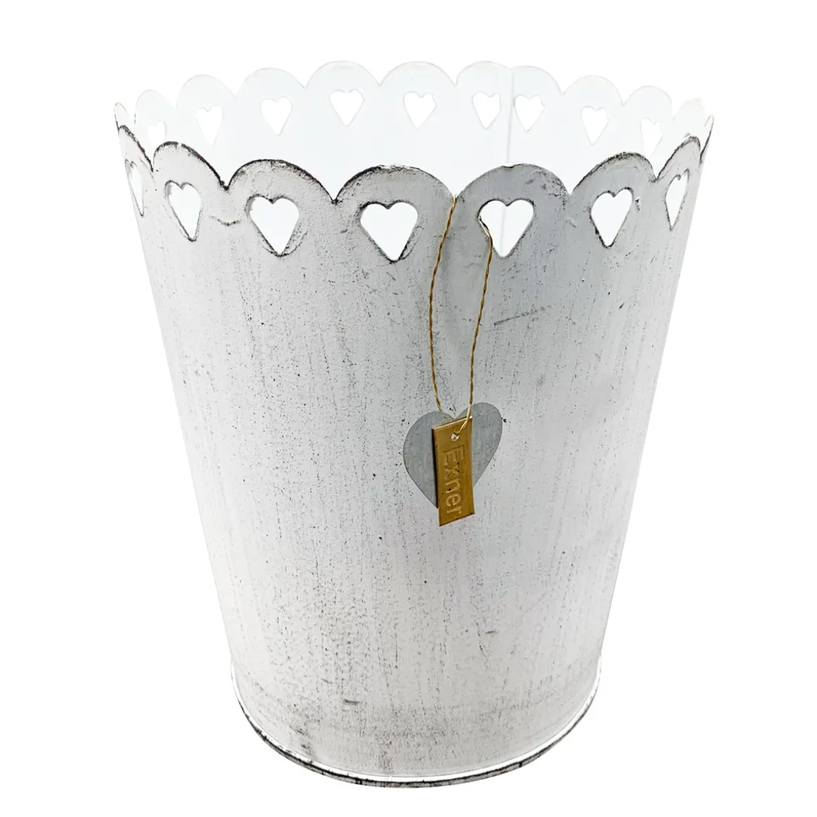 Produktinformationen „Pflanztopf Shabby Chic weiß mit Herzen, Metalltopf weiß used look, 13x15cm“