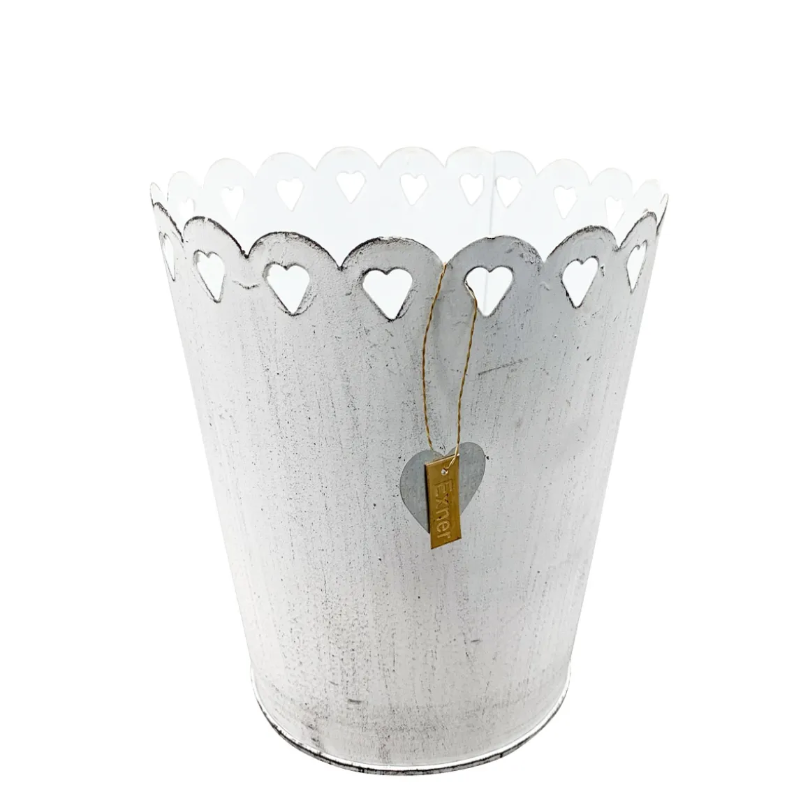 Produktinformationen „Pflanztopf Shabby Chic weiß mit Herzen, Metalltopf weiß used look, 9x11cm“