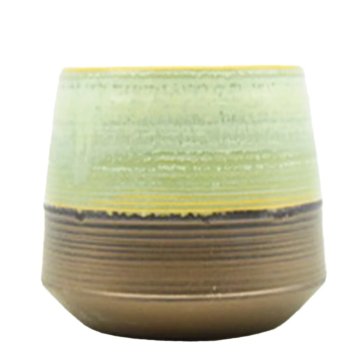 Pflanztopf Toulouse, Übertopf aus Keramik, grün-braun, 11x10cm