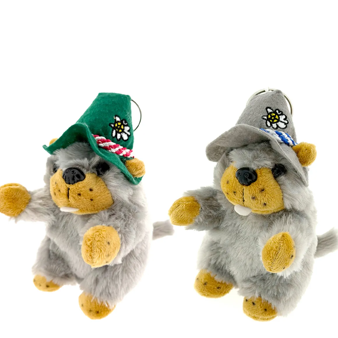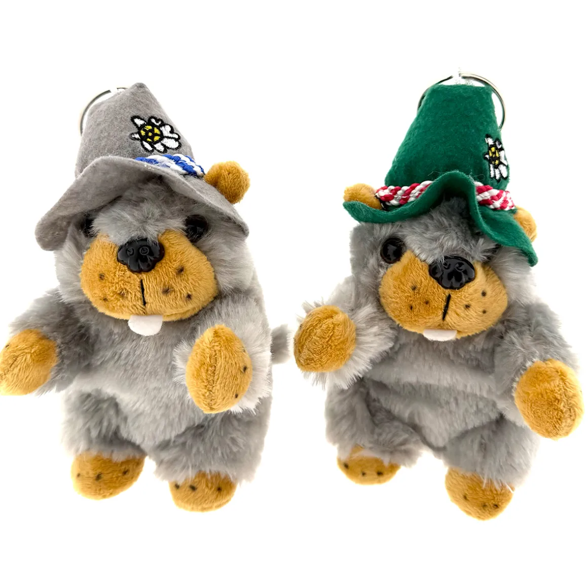 Plüschtier Murmeltier Jodler, Murmeltier mit Jodelsound, grauer oder grüner Hut, 16cm
