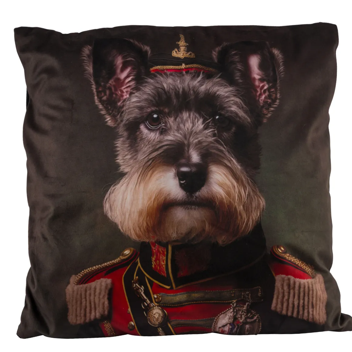 Produktinformationen „Samtkissen Hund, stolzer Admiral Dackel in Uniform, 45x45cm“