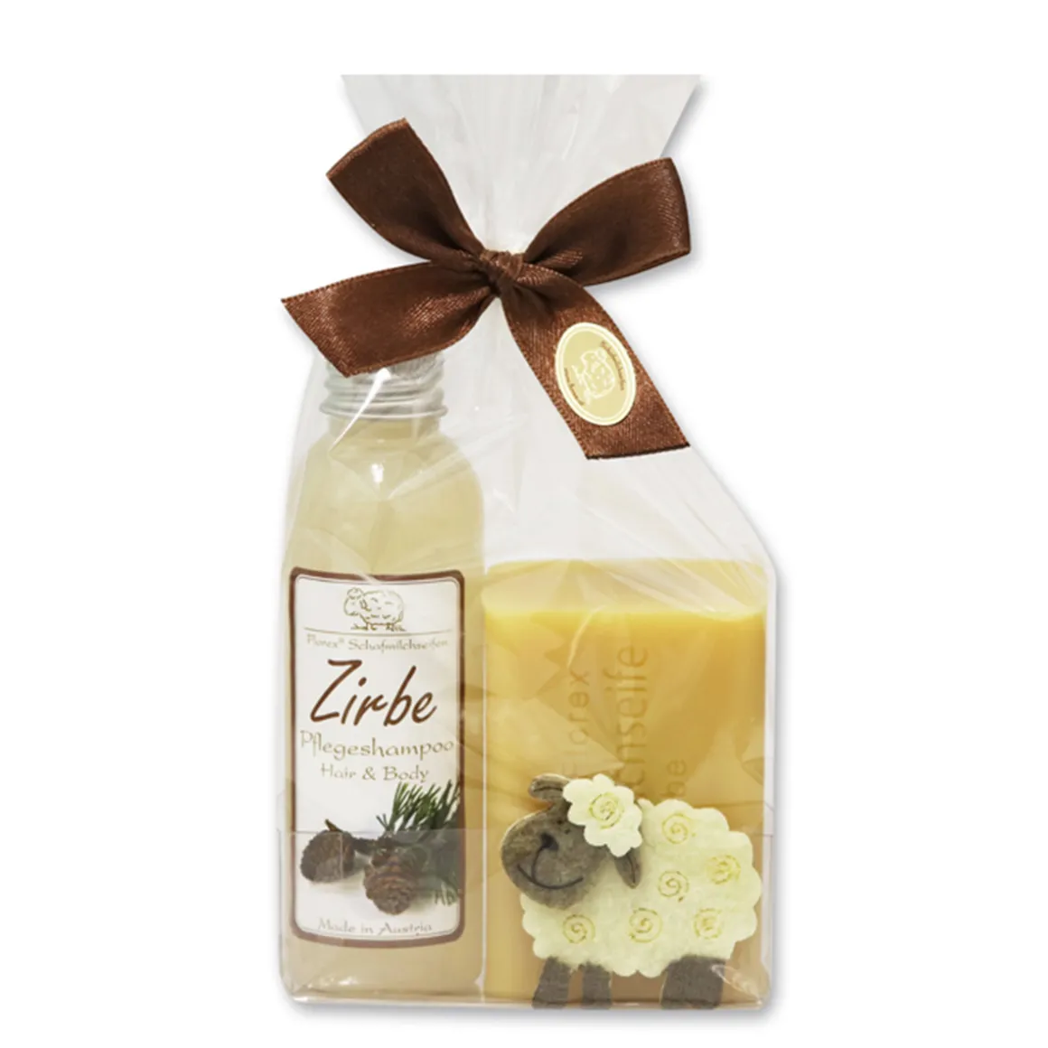 Produktinformationen „Schäfchenset Zirbe, Schafmilchseife & Pflegeshampoo Hair & Body – Original Florex“