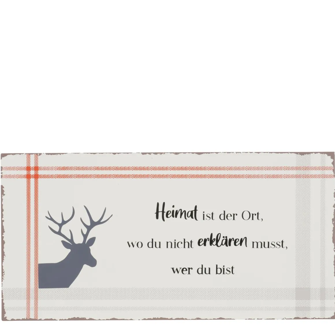 Schild Hirsch Karo, Metallschild Heimat ist der Ort…, 40x20cm, Boltze Home Collections