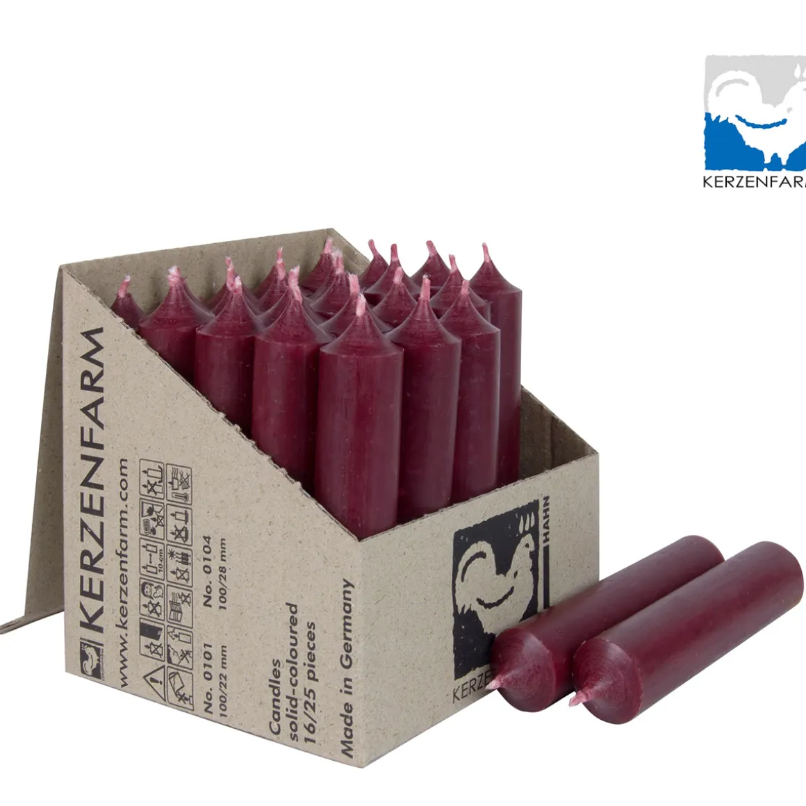 Stabkerze dunkelrot rustikal, Wachskerze, 100x22mm, Kerzenfarm Hahn