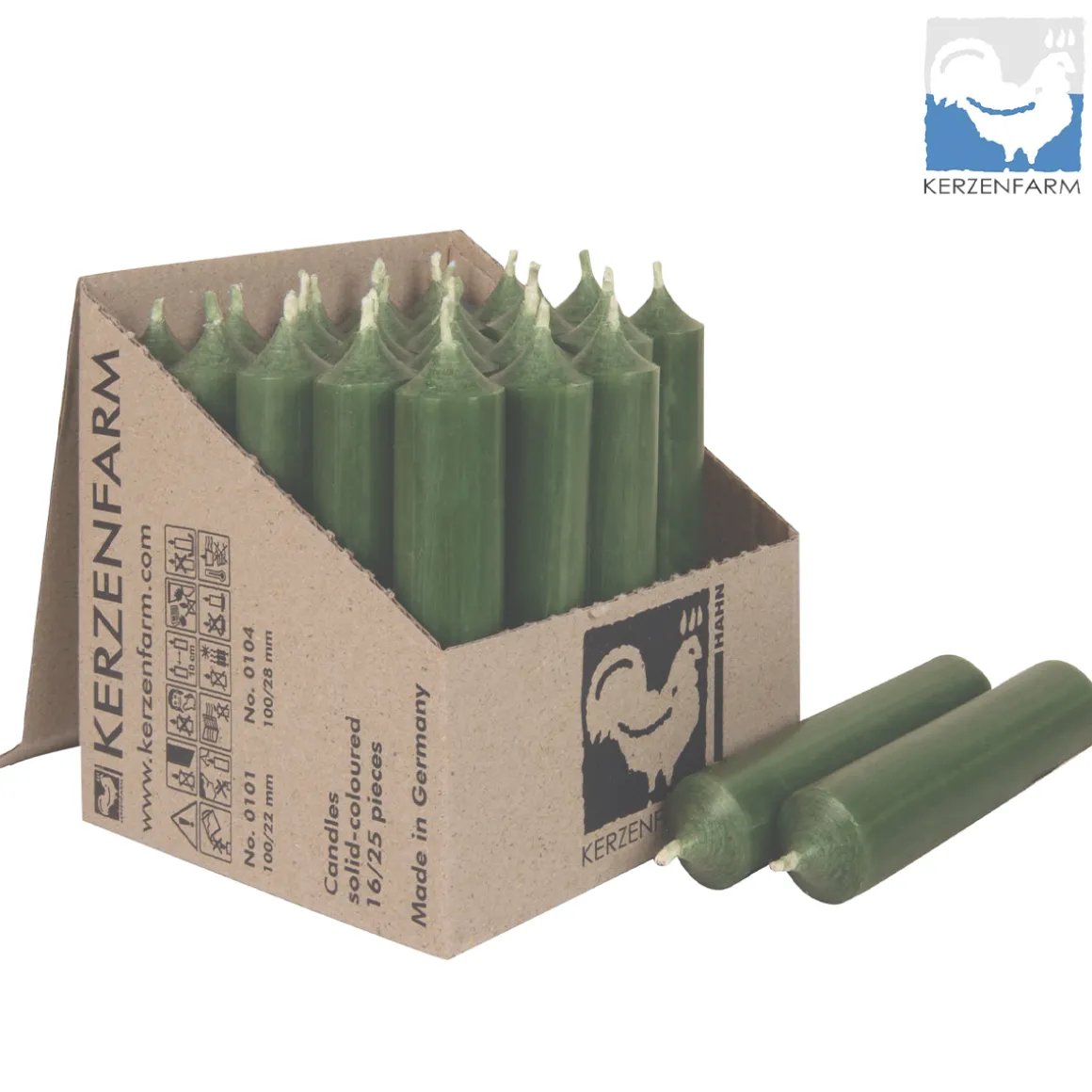 Stabkerze kieferngrün rustikal, Wachskerze, 100x22mm, Kerzenfarm Hahn
