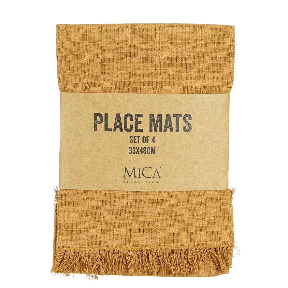 Stoff Platzsets mit Fransen, ocker, 4St/Pack, 38x33cm, Mica Decorations