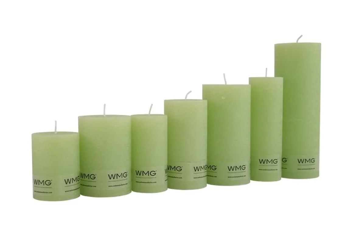 Stumpenkerze Rustic hellgrün, Wachskerze, 60x60mm, WMG Grünberger
