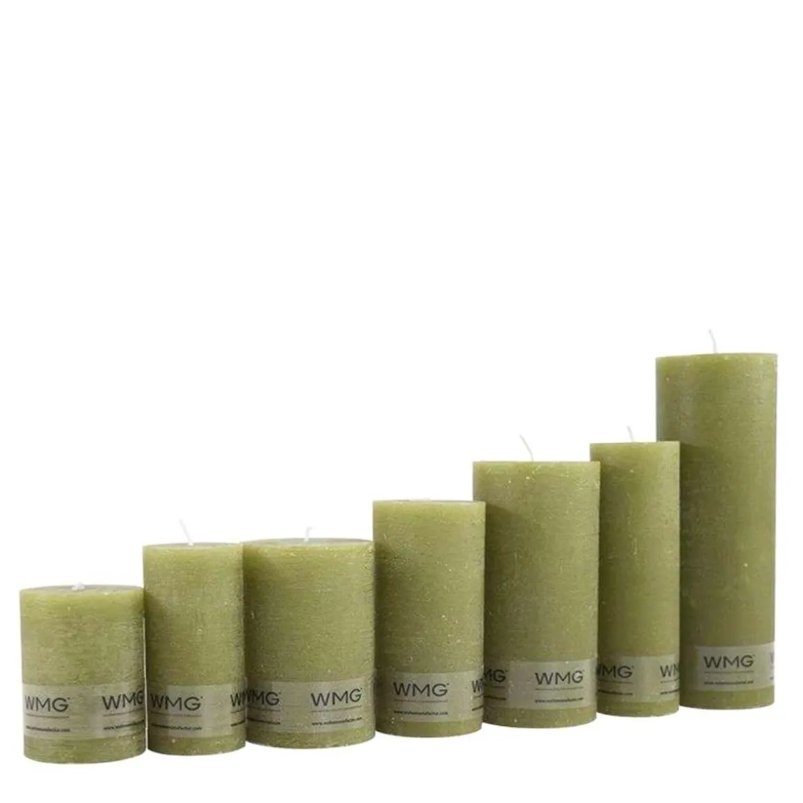Stumpenkerze Rustic olive, Wachskerze, 80x60mm, WMG Grünberger