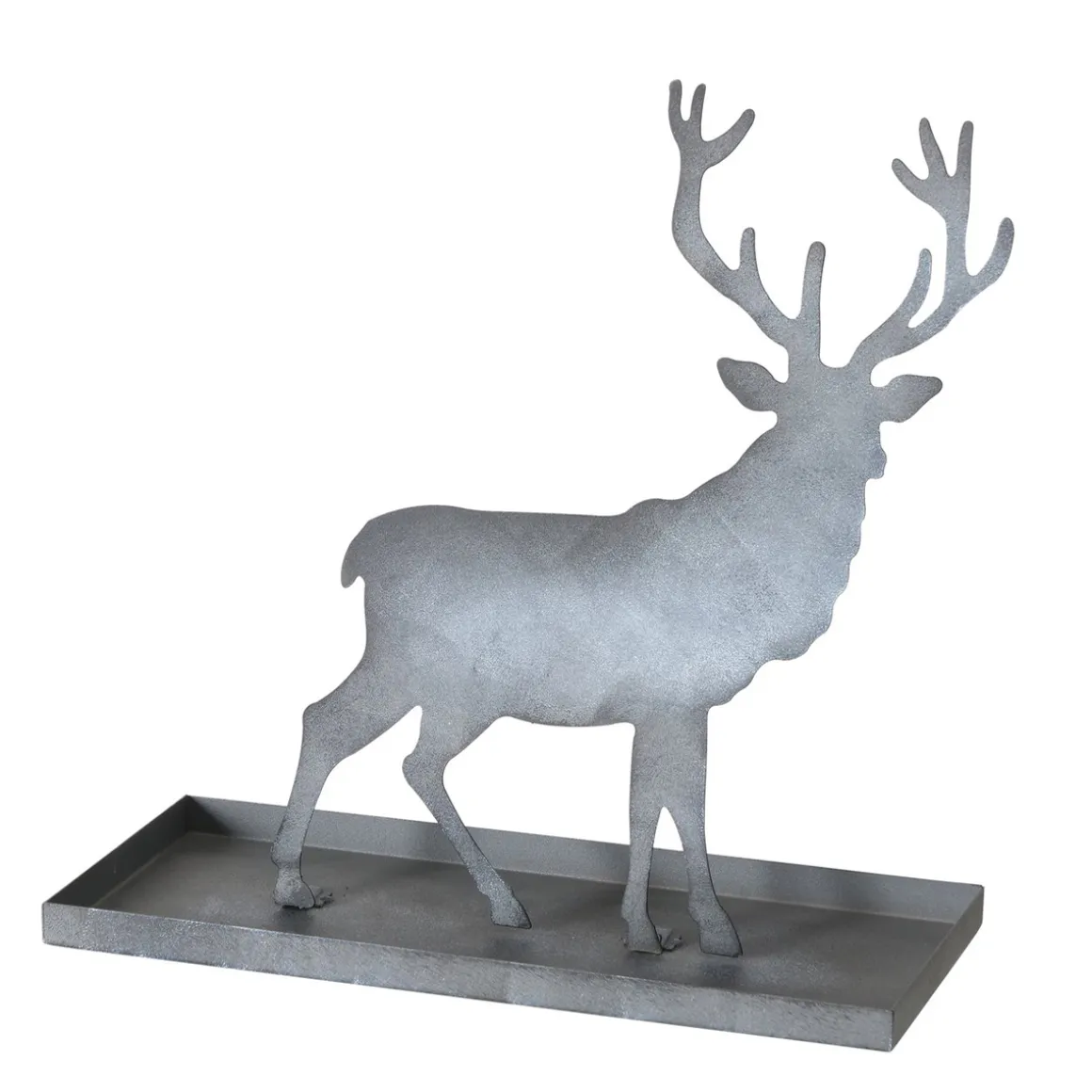 Tablett Hirsch Luga, Metalltablett mit Hirsch abnehmbar, grau, 34x35cm