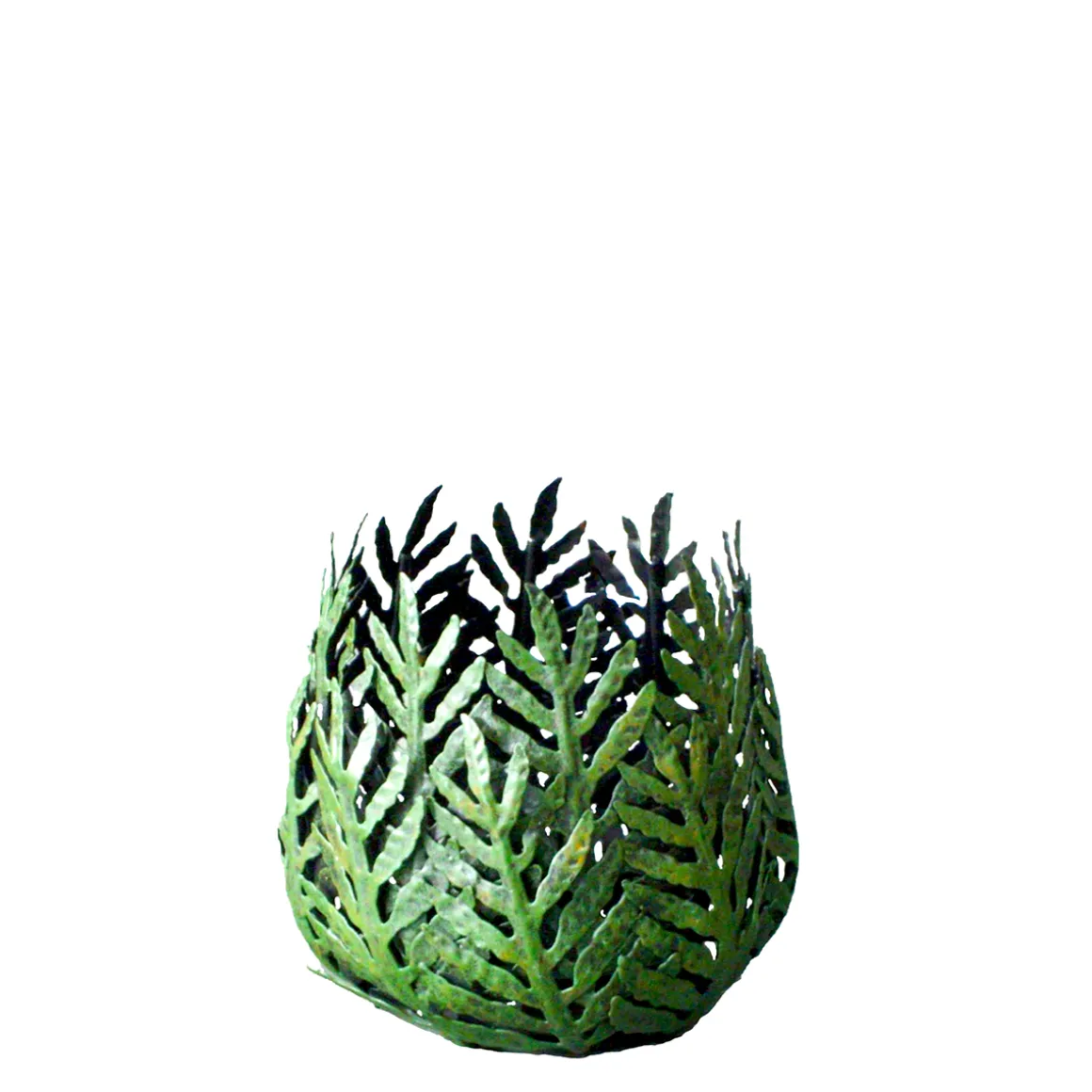 Teelichthalter Leaves dunkelgrün, Metallwindlicht filigrane Blätter, 9x8cm