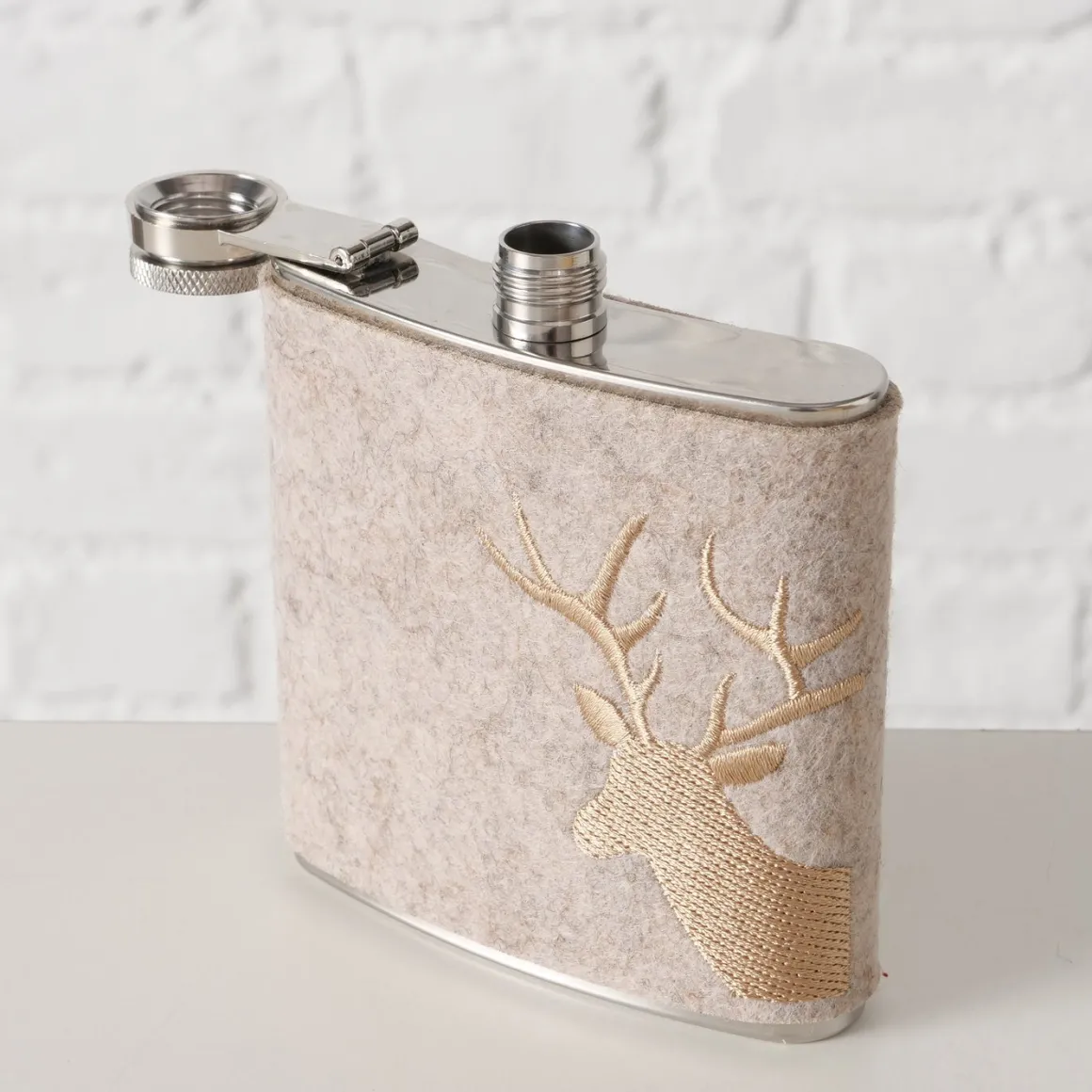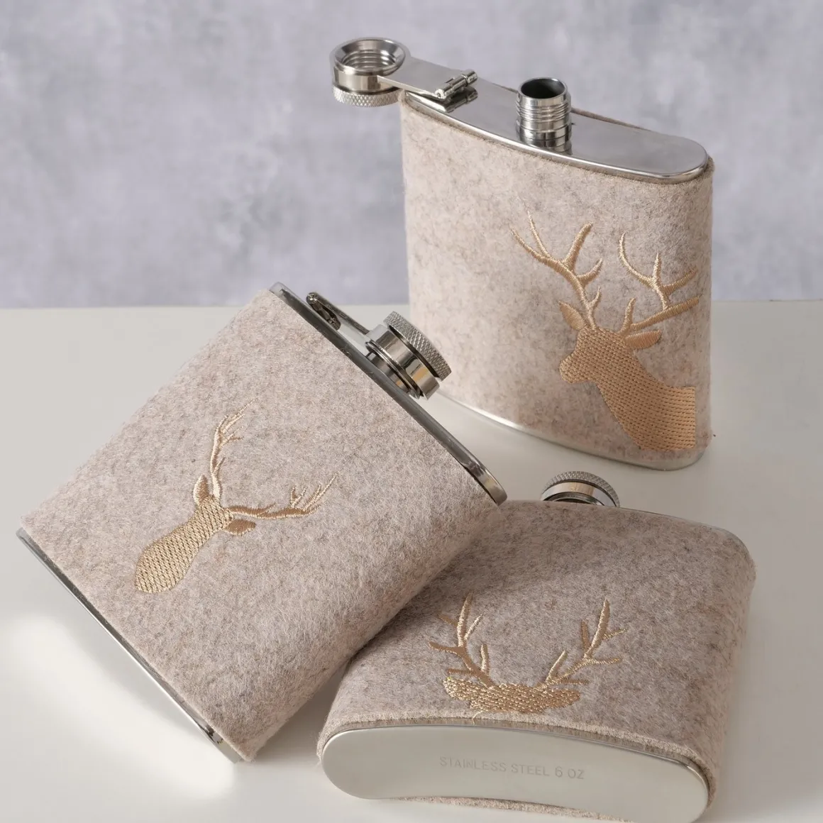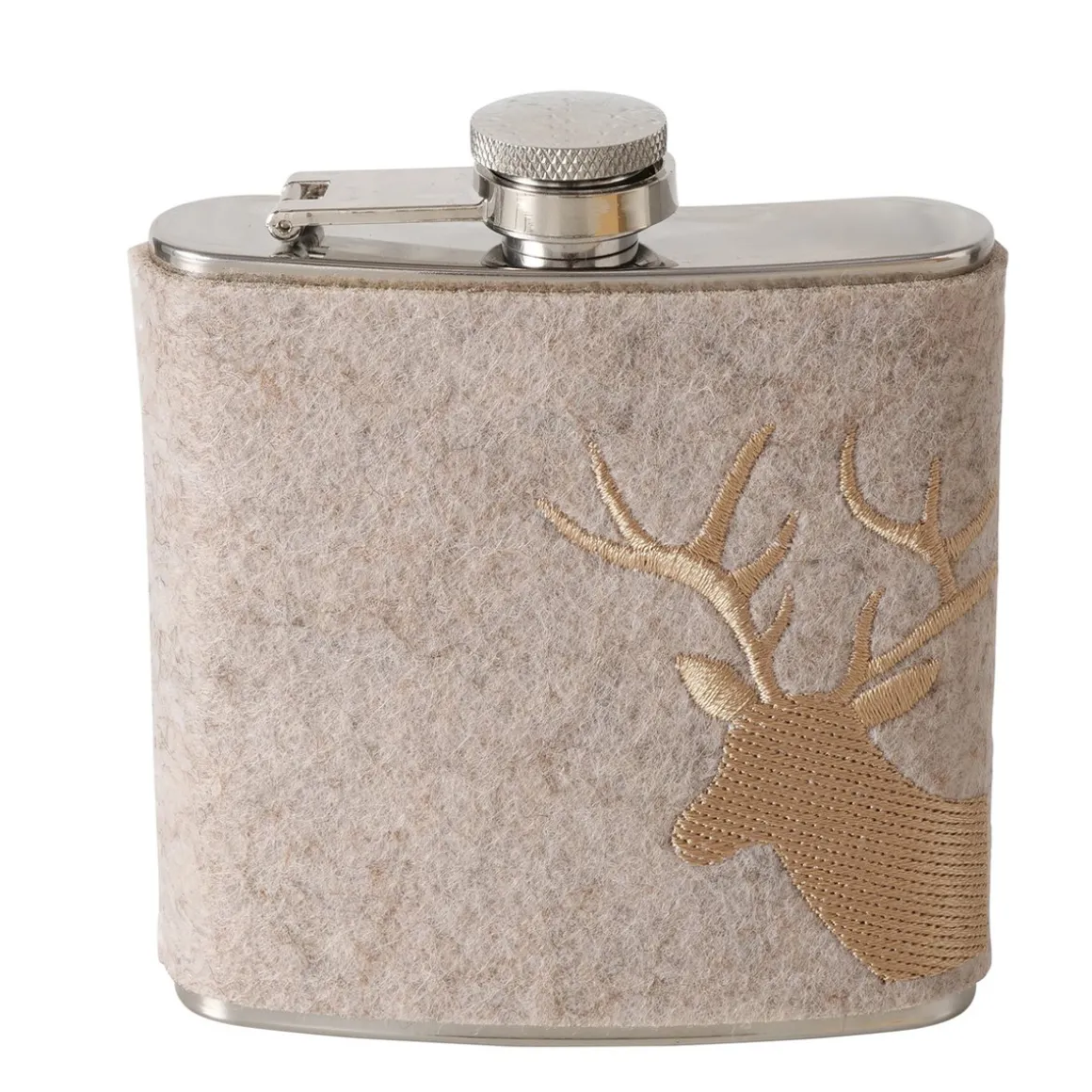 Trinkflasche Hirsch Vilbert, Flaschmann aus Filz mit Hirschkopf seitlich, 11x9cm, Boltze Home Collections