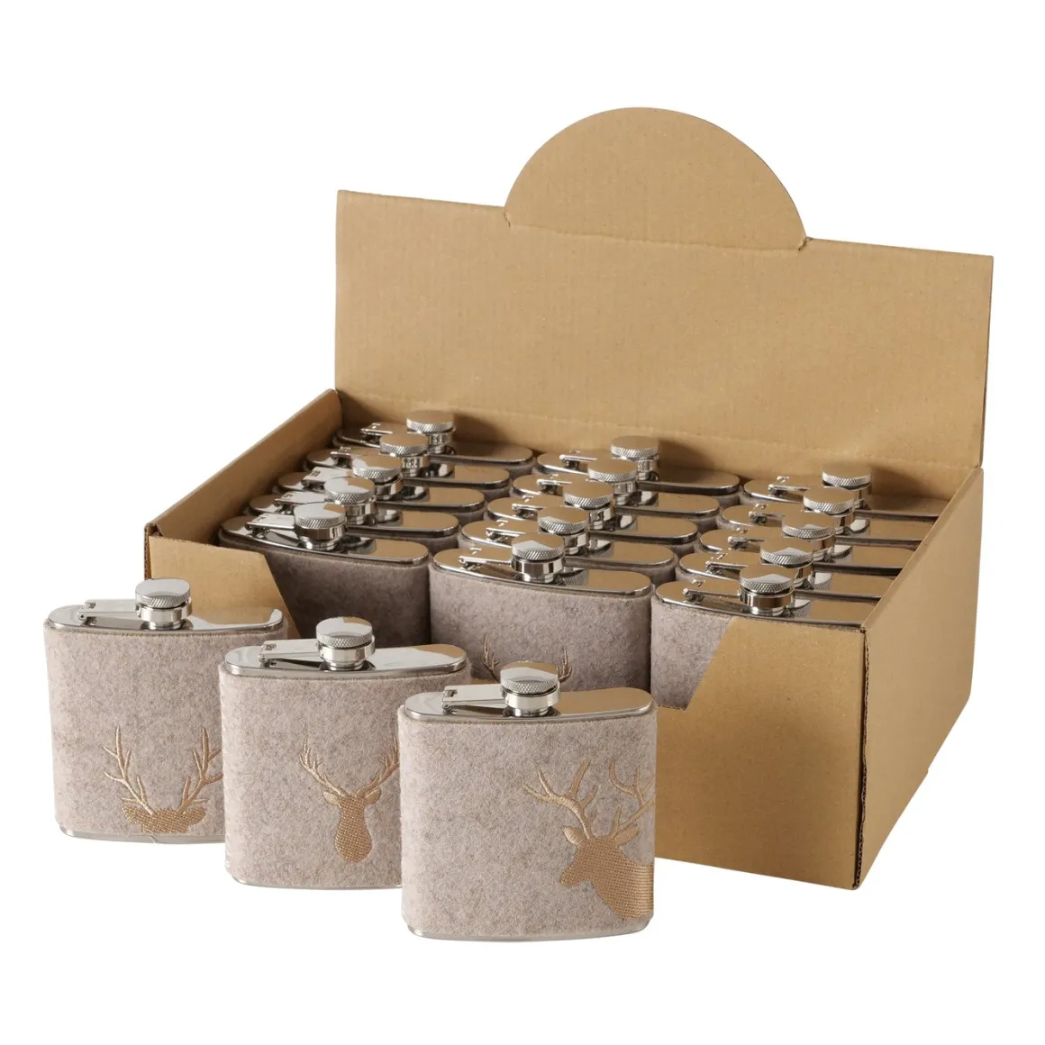 Trinkflasche Hirsch Vilbert, Flaschmann aus Filz mit Hirschkopf unten, 11x9cm, Boltze Home Collections