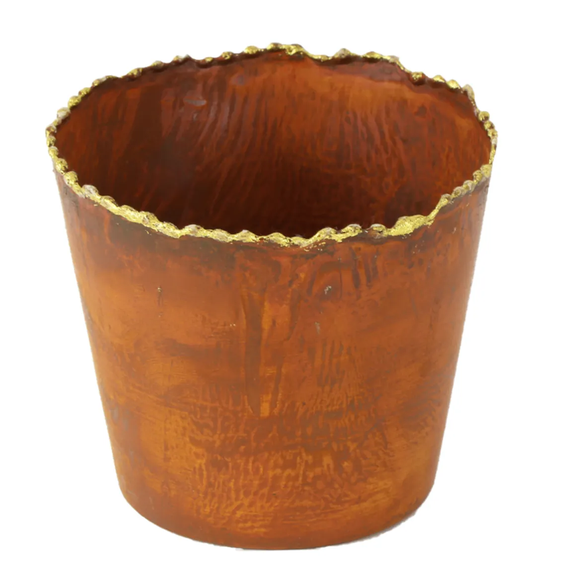Übertopf Rost mit Goldrand, Pflanztopf Edelrost used look , 12x13cm