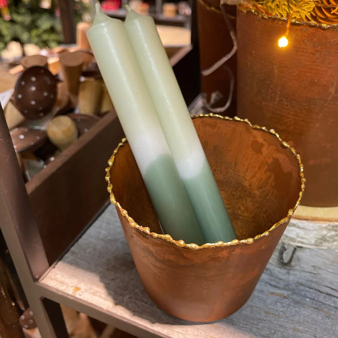 Übertopf Rost mit Goldrand, Pflanztopf Edelrost used look, 9x10cm