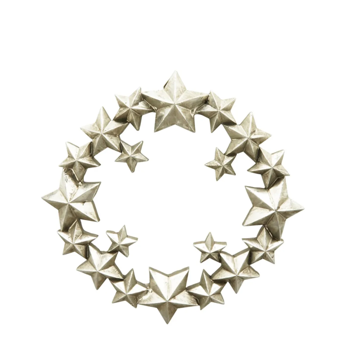 Wandobjekt Kranz aus Sterne 3D, Sternenkranz silber, Ø 26cm, Polyresin