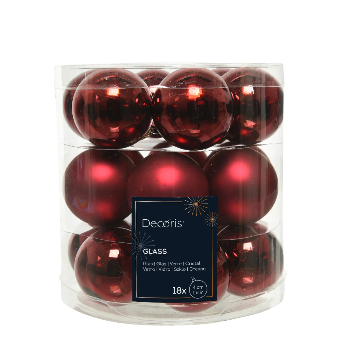 Weihnachtsbaumkugeln aus Glas, ochsenblut glanz/matt, Ø4cm, 18St/Box, Decoris