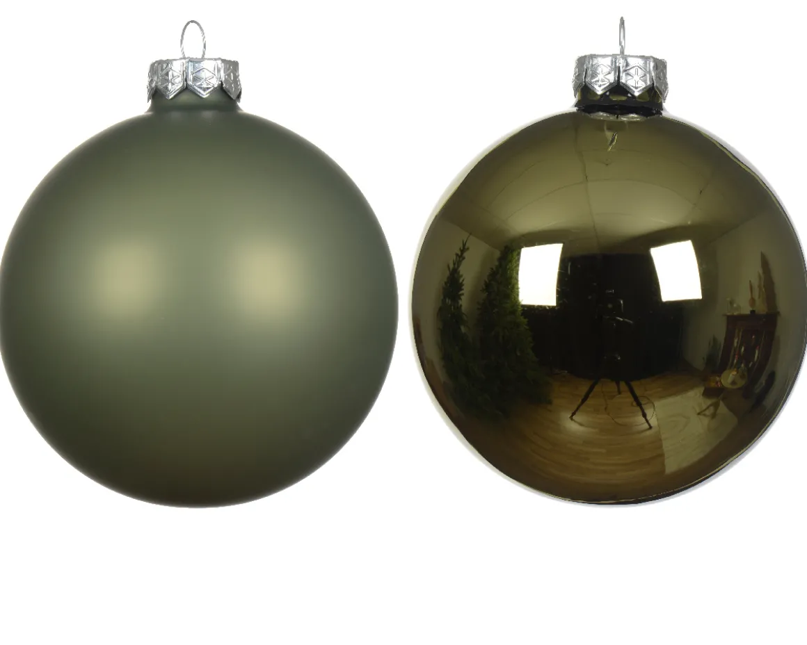 Weihnachtsbaumkugeln aus Glas, rosmaringrün glanz/matt, Ø4cm, 18St/Box, Decoris