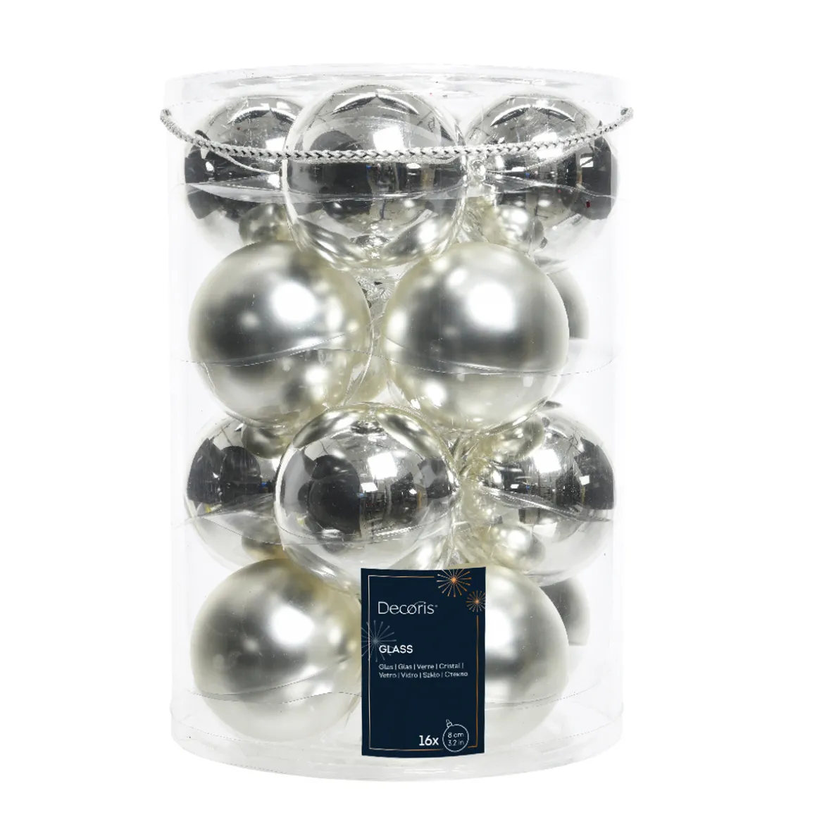 Weihnachtsbaumkugeln aus Glas, silber glanz/matt, Ø8cm, 16St/Box, Decoris
