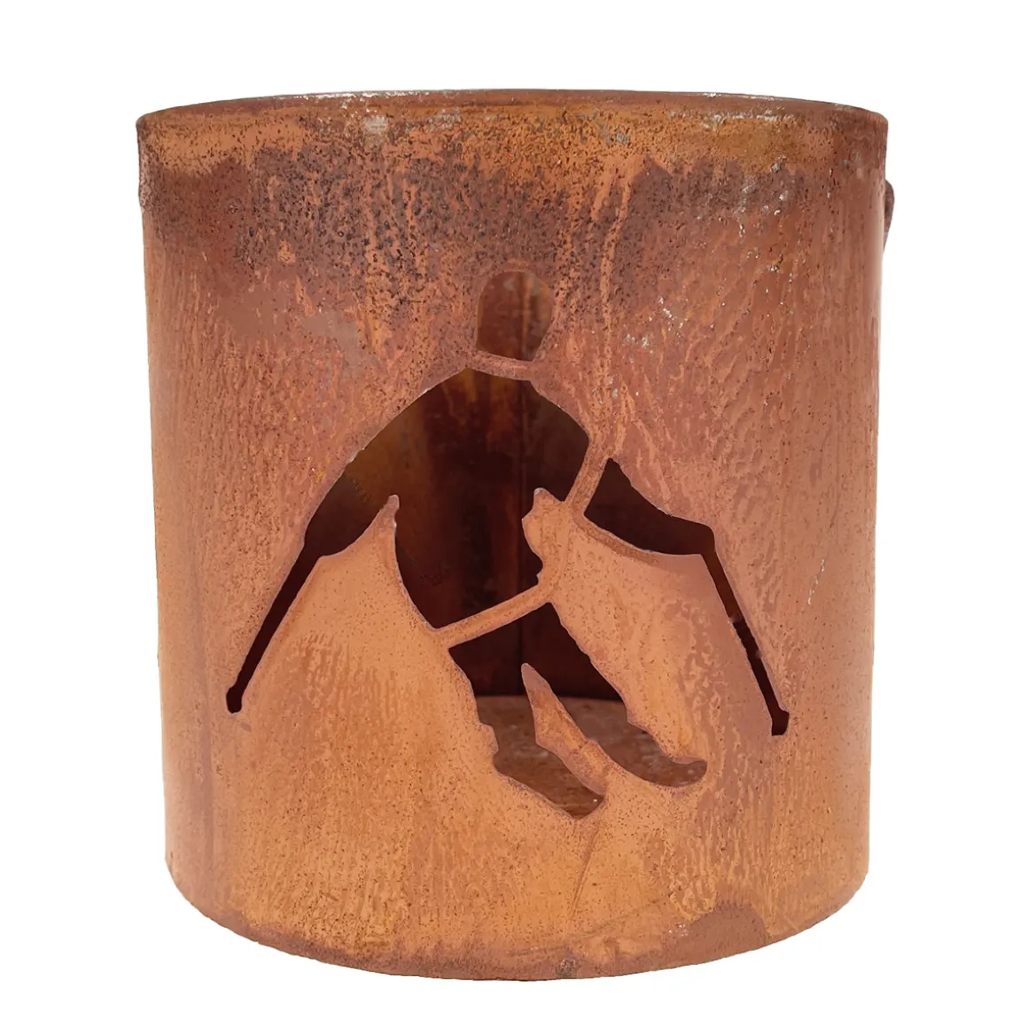 Windlicht Skifahrer, Windlicht mit Henkel aus Rost, 13x12cm